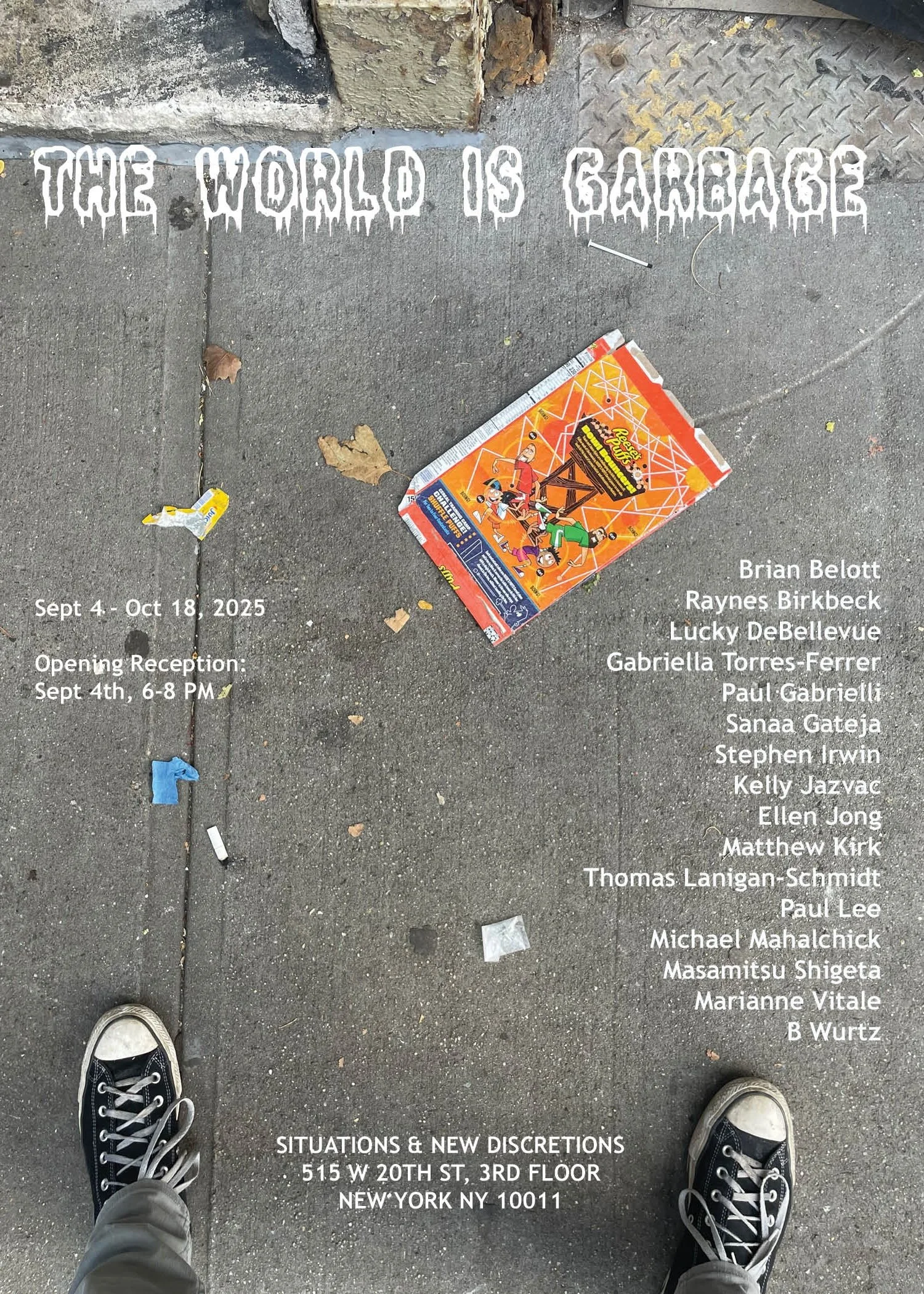 SITUATIONS & NEW DISCRETIONS are both located at 515 W. 20th Street, 3rd floor. Hours are Wednesday through Saturday, 11am to 6pm and by appointment. For images or press inquiries, please contact jackie@situations.us or benjamin@newdiscretions.